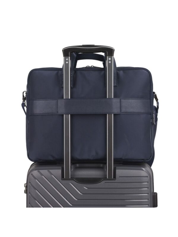 Şıklık ve işlevselliği bir arada sunan GABOL JAZZ evrak çantası, lacivert renkte sentetik deriden üretilmiştir. 15.6 inç dizüstü bilgisayarlar için özel olarak tasarlanmış olup, çift bölmeli iç yapısıyla belgelerinizi ve cihazlarınızı düzenli bir şekilde taşımanızı sağlar. İç kısmı dolgulu astarla kaplıdır ve dizüstü bilgisayar için koruyucu bir bölmeye sahiptir. Bavul askı aparatı sayesinde seyahatlerinizde kullanım kolaylığı sağlar. PVC içermez.